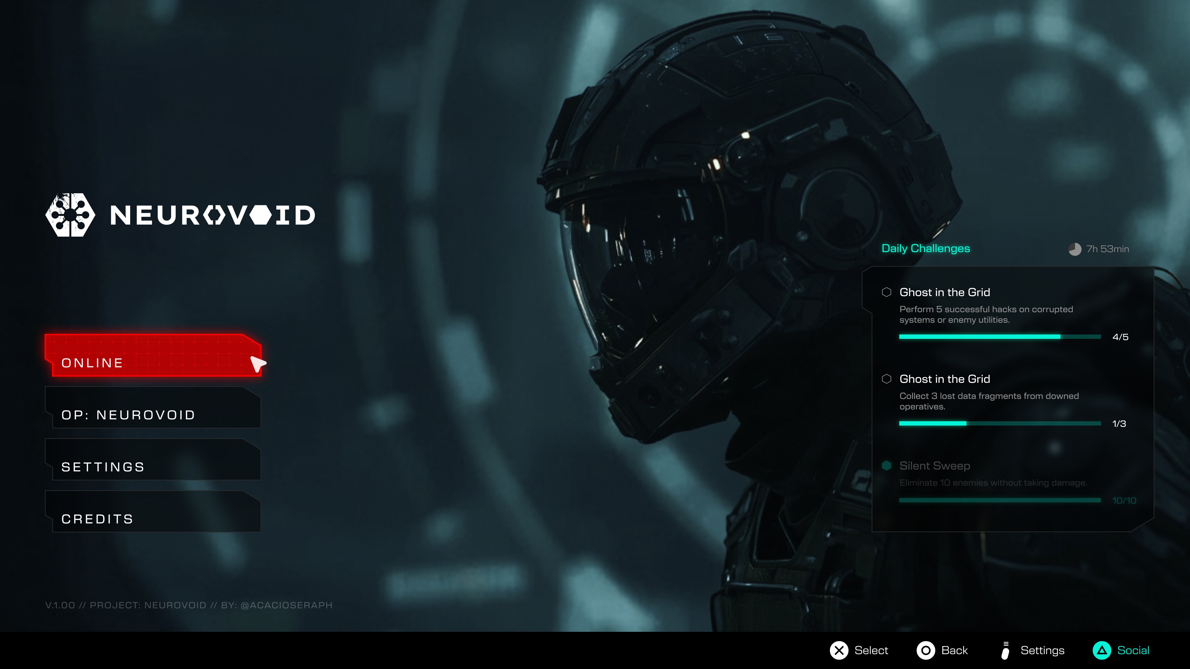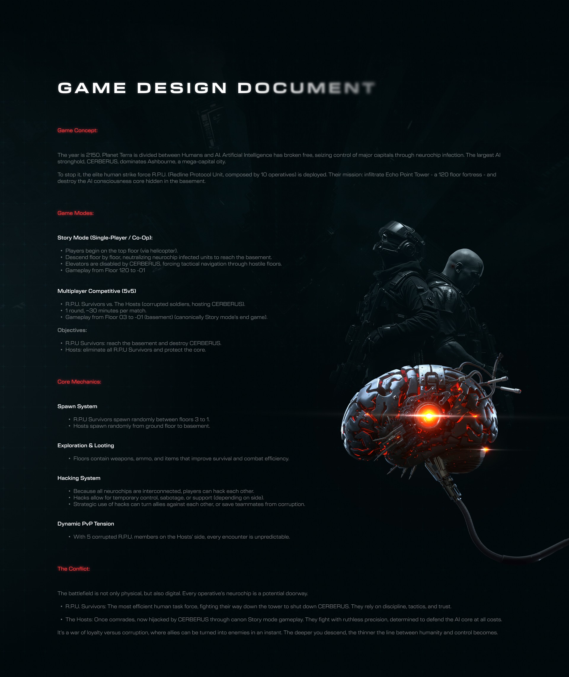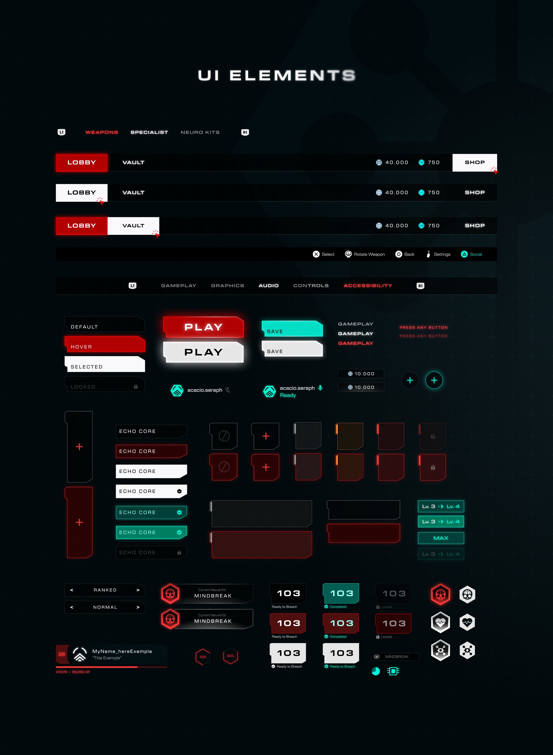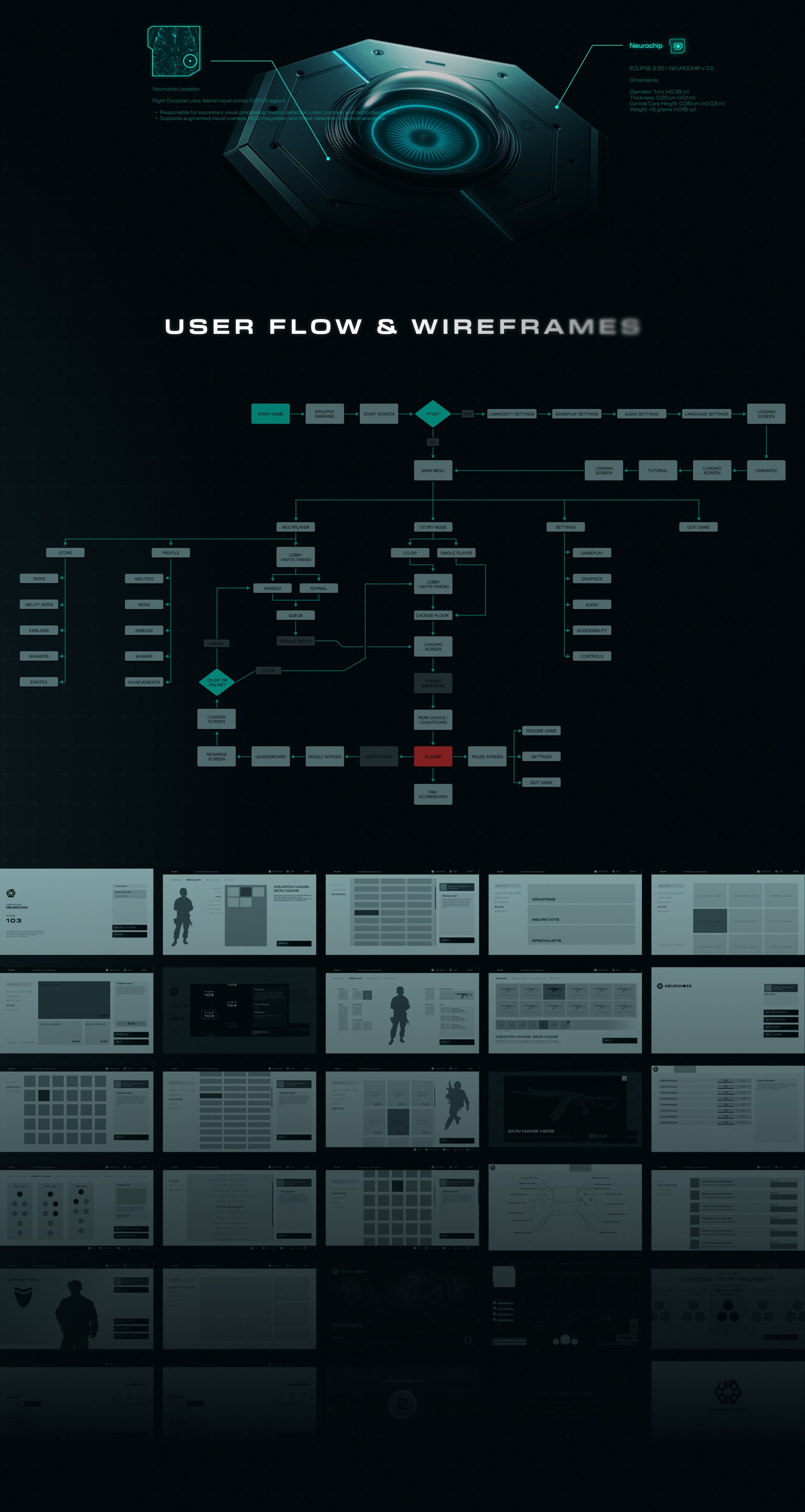 NEUROVOID is a first-person shooter video game concept, set in a dark and dystopian world. I began by developing the game idea and branding, then moved on to planning and creating the full game narrative along with the Game Design Document (GDD). Following this, I developed user personas, created a mind map, mapped out the user flow, and finally designed the UI/UX for the entire game, progressing from low-fidelity wireframes to final concepts the final interactive prototype (link in behance). This project was designed for both PC and console platforms.