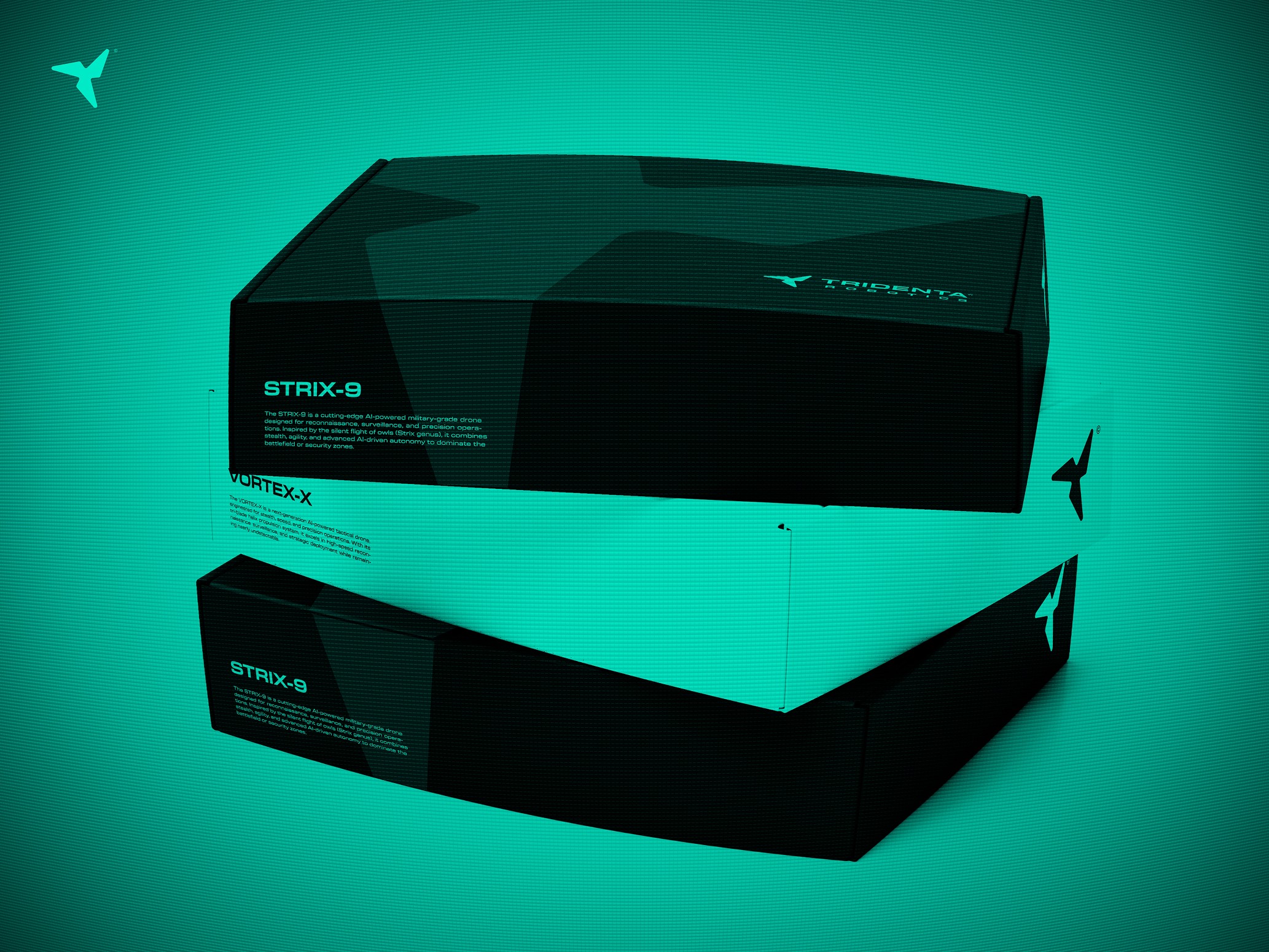 Brand and Visual Identity made for Tridenta Robotics, a cutting-edge defense technology company specializing in the design, development, and manufacturing drones engineered for night operations and low-visibility environments. With a focus on stealth, advanced optics, and AI-powered autonomy, Tridenta Robotics provides next-generation unmanned aerial systems (UAS) for reconnaissance, surveillance, and tactical deployment.